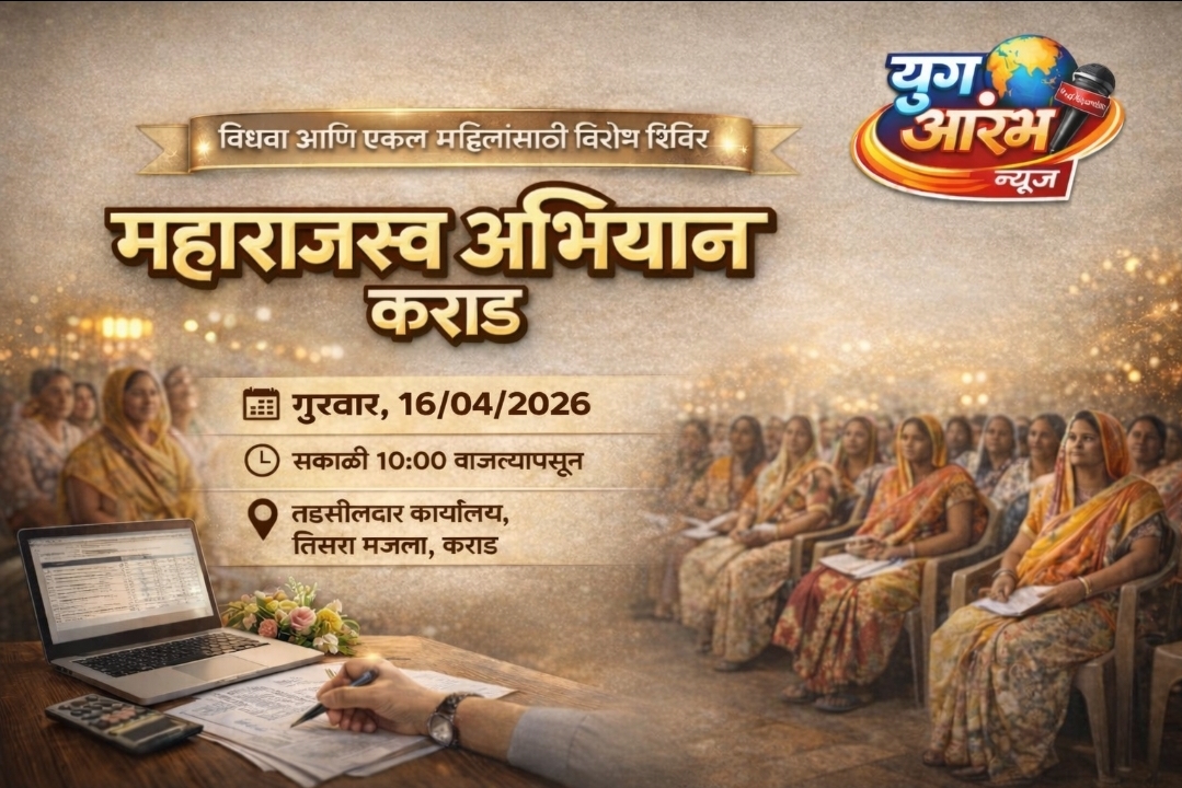 कराड : येथे विधवा व एकल महिलांसाठी शासनाच्या विविध योजनांचा लाभ एकाच ठिकाणी उपलब्ध करून देण्यासाठी “महाराजस्व अभियान” अंतर्गत विशेष शिबिराचे आयोजन करण्यात आले आहे. हे शिबिर गुरुवार, दिनांक १६ एप्रिल २०२६ रोजी सकाळी १० वाजल्यापासून तहसीलदार कार्यालय, तिसरा मजला, कराड येथे आयोजित करण्यात येणार आहे. या उपक्रमामध्ये विधवा, एकल, परित्यक्ता आणि निराधार महिलांना विविध शासकीय योजनांचा थेट लाभ मिळवून देण्याचा प्रयत्न करण्यात येणार आहे.